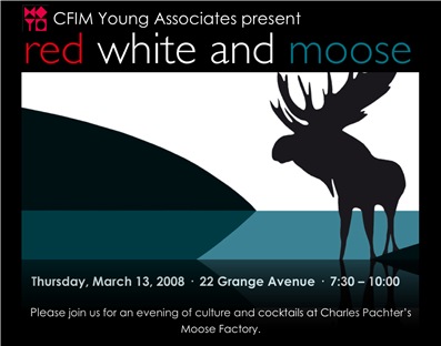 I can finally share photos from my charity event: Red, White and Moose - the official launch party of the Young Associates of the Canadian Friends of the Israel Museum. (I know - it's a mouthful!)