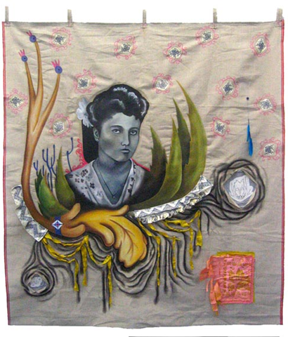 Drawing and textiles on Linen 4'9 x 4'5