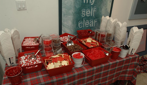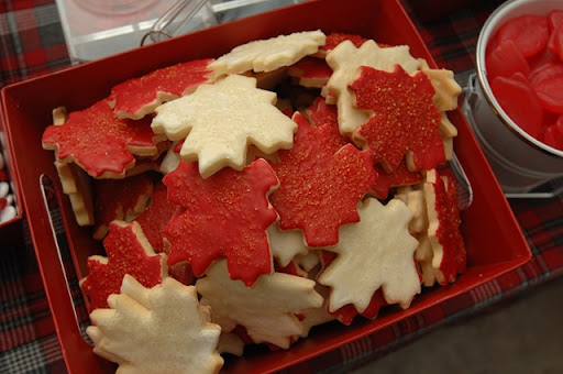 Branded M&Ms, home made maple leaf sugar cookies and a variety of red and white candies and chocolate "moose droppings" made for an eye-catching candy selection that guests could fill branded Chinese take out cartons with before they went home.